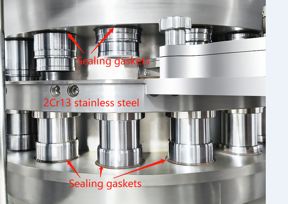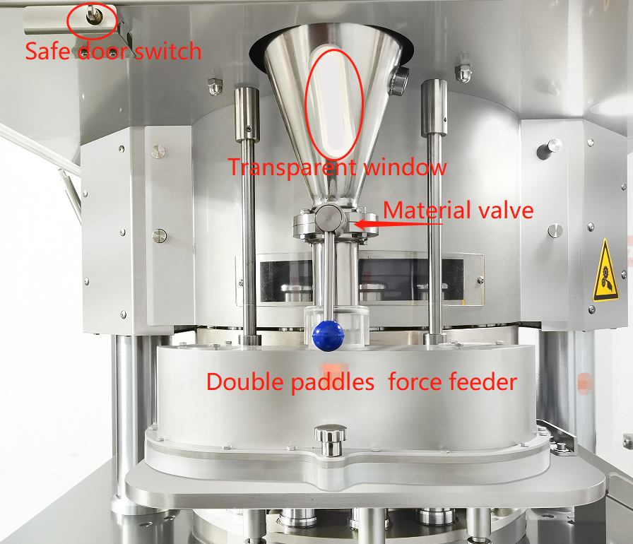 - опционально могут быть добавлены функции контроля усилия прессования, визуализация толщины таблетки и глубины наполнения на экране, функции автоматизации такие как автоматическая регулировка глубины наполнения с целью поддержания установленного усилия прессования, регулировка глубиной наполнения и толщиной таблетки с сенсорного экрана. Данные функции редко используются с обозначенной версией серии.