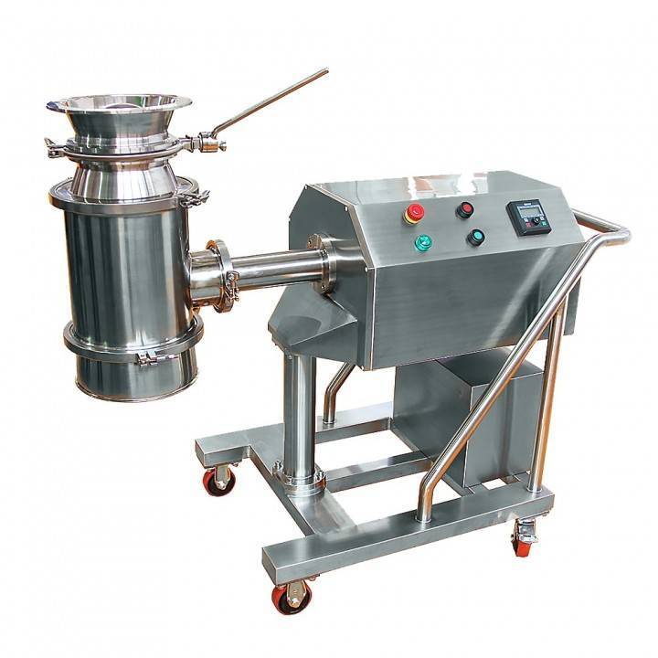 Методика с высоким усилием сдвига. Порошковое сырье подвергается интенсивному воздействию импеллеров, всасывающих и равномерно распыляющих связующую жидкость. Образуются гранулы разного объема и формы. Измельчители превращают их в однородную фракцию с заданным размером частиц. Далее выполняется сушка в специальном шкафу.
