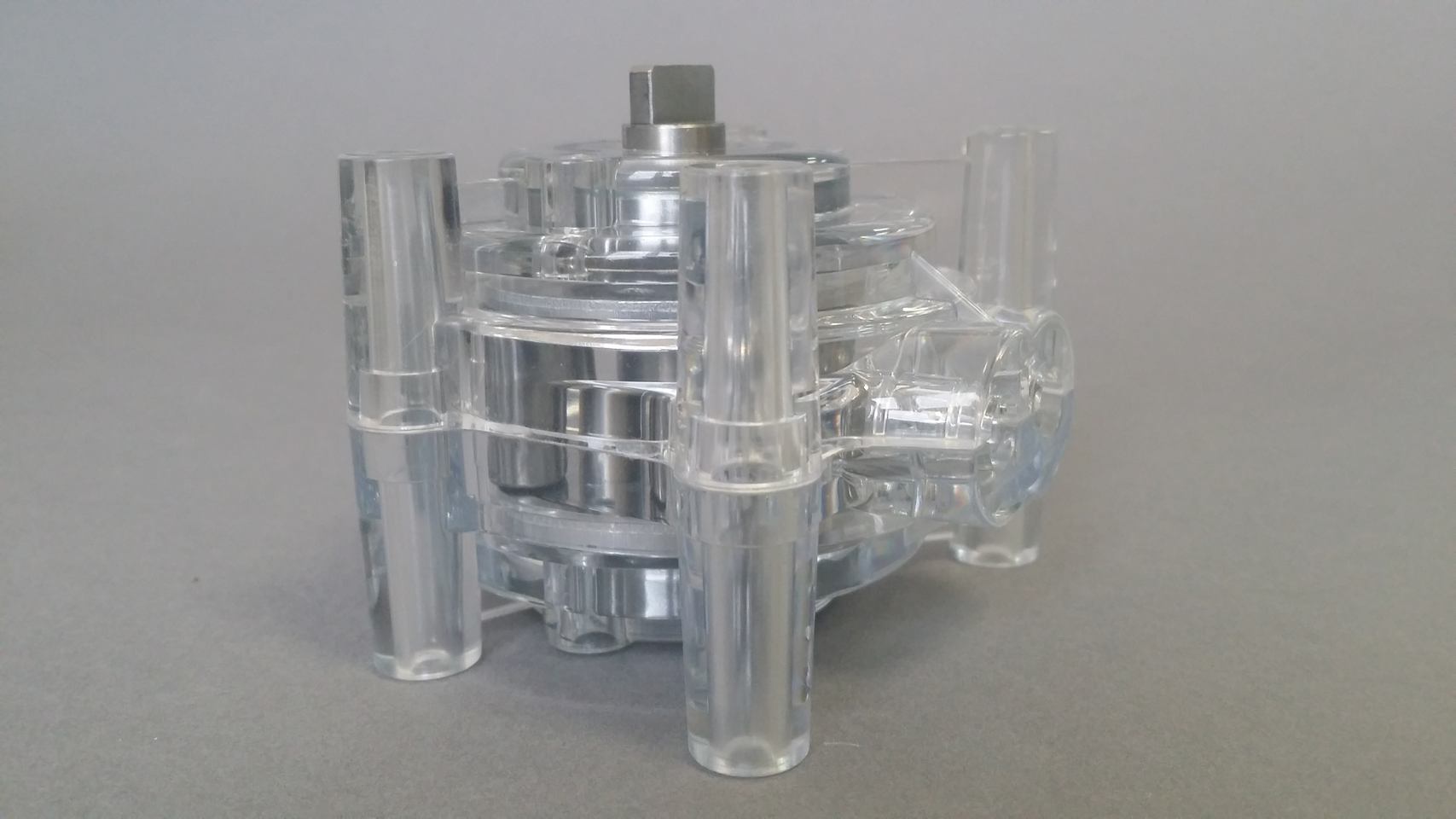 Корпус выполнен из прозрачного поликарбоната. Позволяет легко контролировать стадии рабочего процесса. Термопластичный синтетический полимер характеризуется малым весом, прочностью, жесткостью при хорошей растяжимости, электроизоляционными свойствами,
